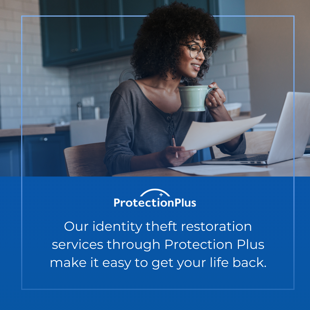 Through our exclusive partnership with Protection Plus, we're proud to offer thorough identity theft restoration services to help you recover your identity, no matter how it was compromised. (Even if it's not related to your tax return!) Our team of experts is dedicated to working with you to restore your identity and protect you from future threats.
